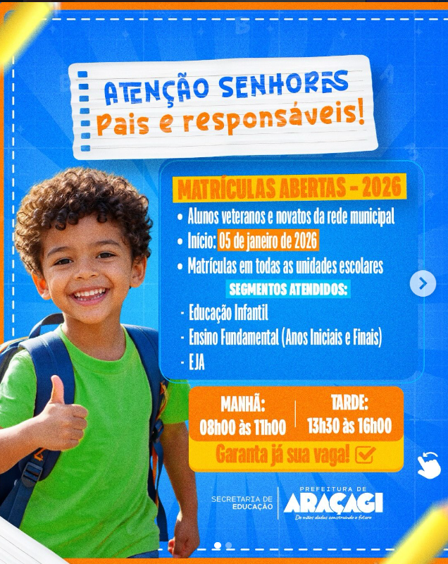 Matrículas Abertas 2026 – Rede Municipal de Ensino